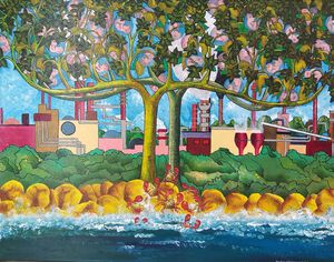 2022Het gaat verkeerd met het milieu! Kiest de wereld voor links of rechts? (Acryl op kunststof)